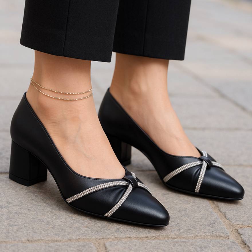 کفش جنس : چرم رنگ : مشکی سایز : 37 / 38 / 39 / 40 پاشنه : 4 سانت