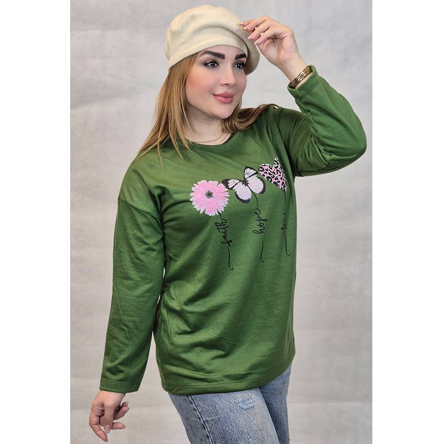- بلوز آستین بلند گل و پروانه 289002436