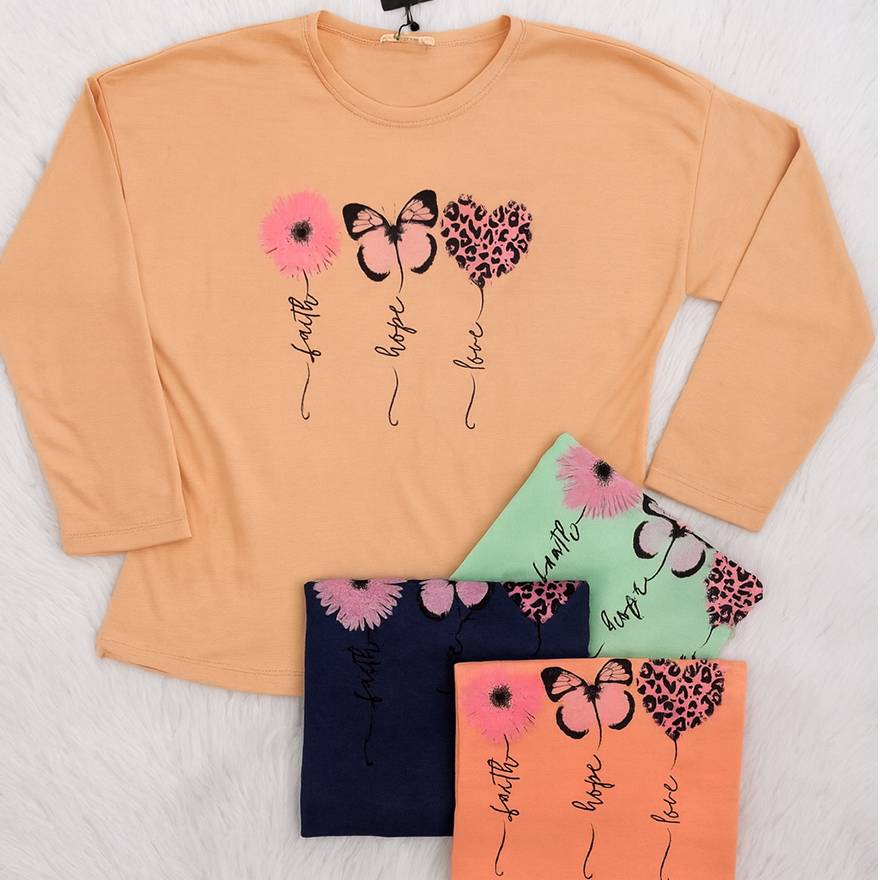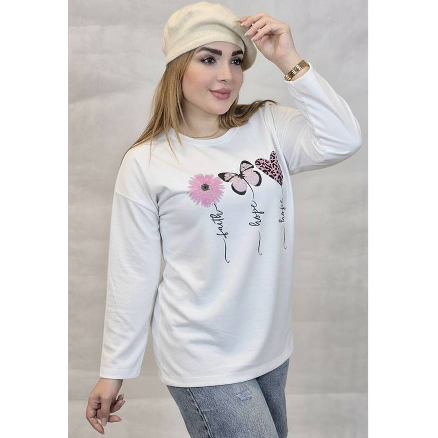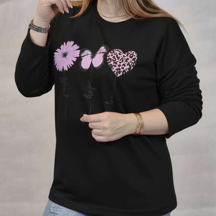 بلوز آستین بلند گل و پروانه 289002436