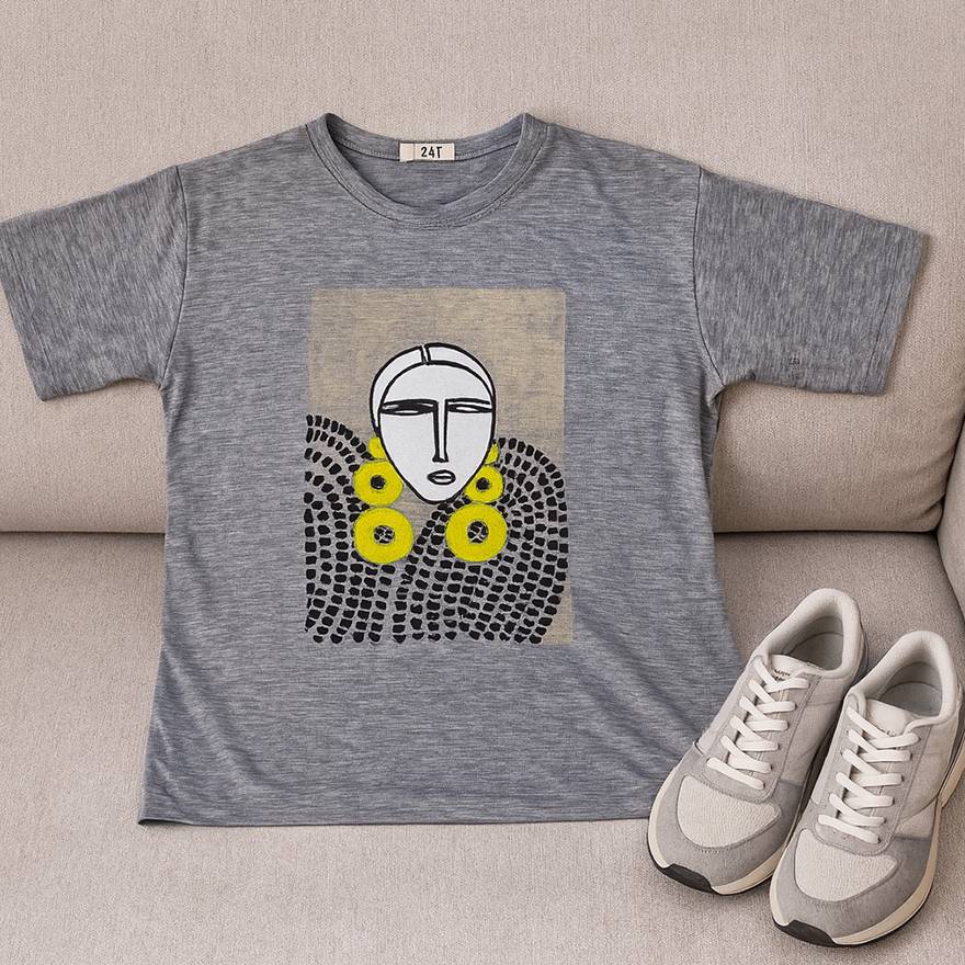تیشرت ملانژ چاپ دختر 289002438