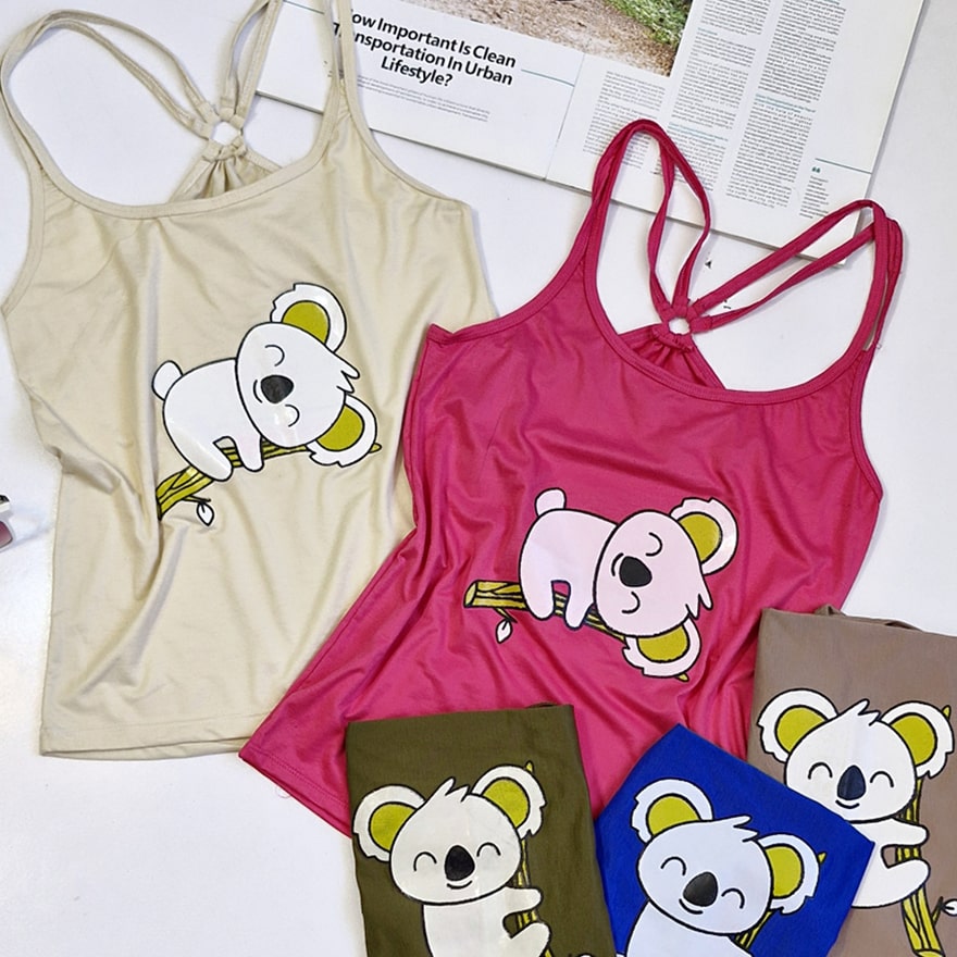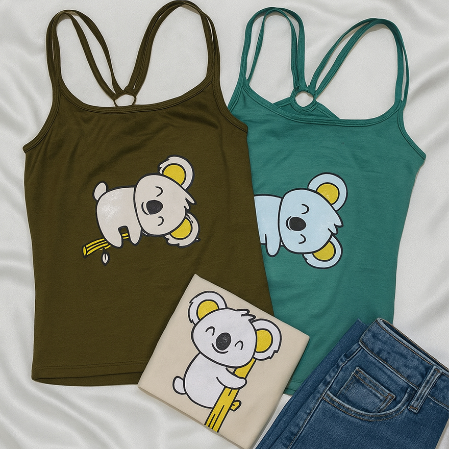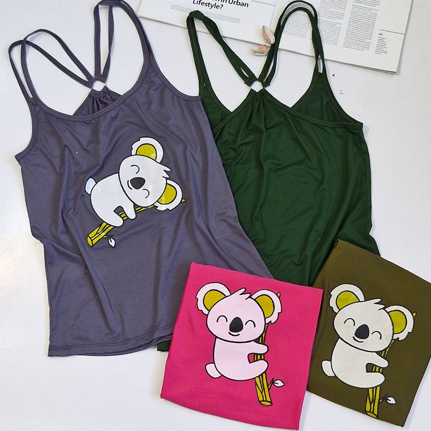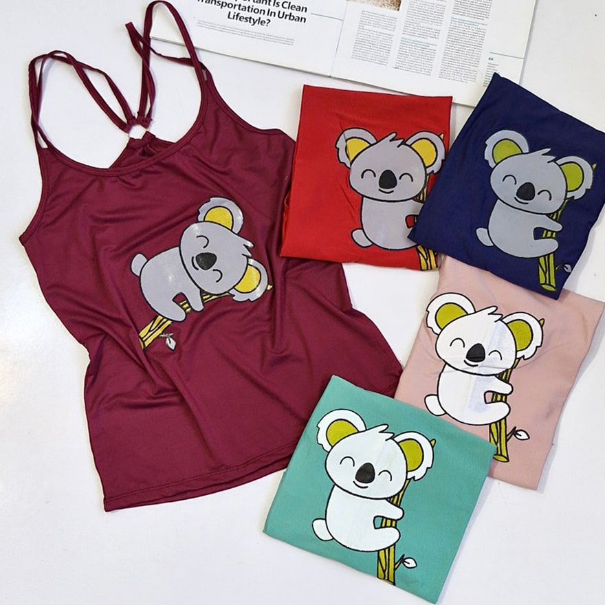 تاپ جنس : ویسکوز رنگ : در چند رنگ سایز : فری سایز ( 36 تا 46 ) قد : 50 دور سینه : 80 *کشسانی دارد* * چاپ کوآلا زرشکی و سرمه ای به رنگ قهوه ای است*