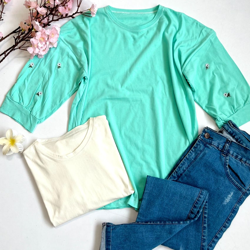 بلوز جنس : نخ پنبه رنگ : در چند رنگ سایز : فری سایز ( 36 تا 46 ) قد : 65 قد آستین : 30/ دور بازو : 44/ مچ : 26 دور سینه : 104