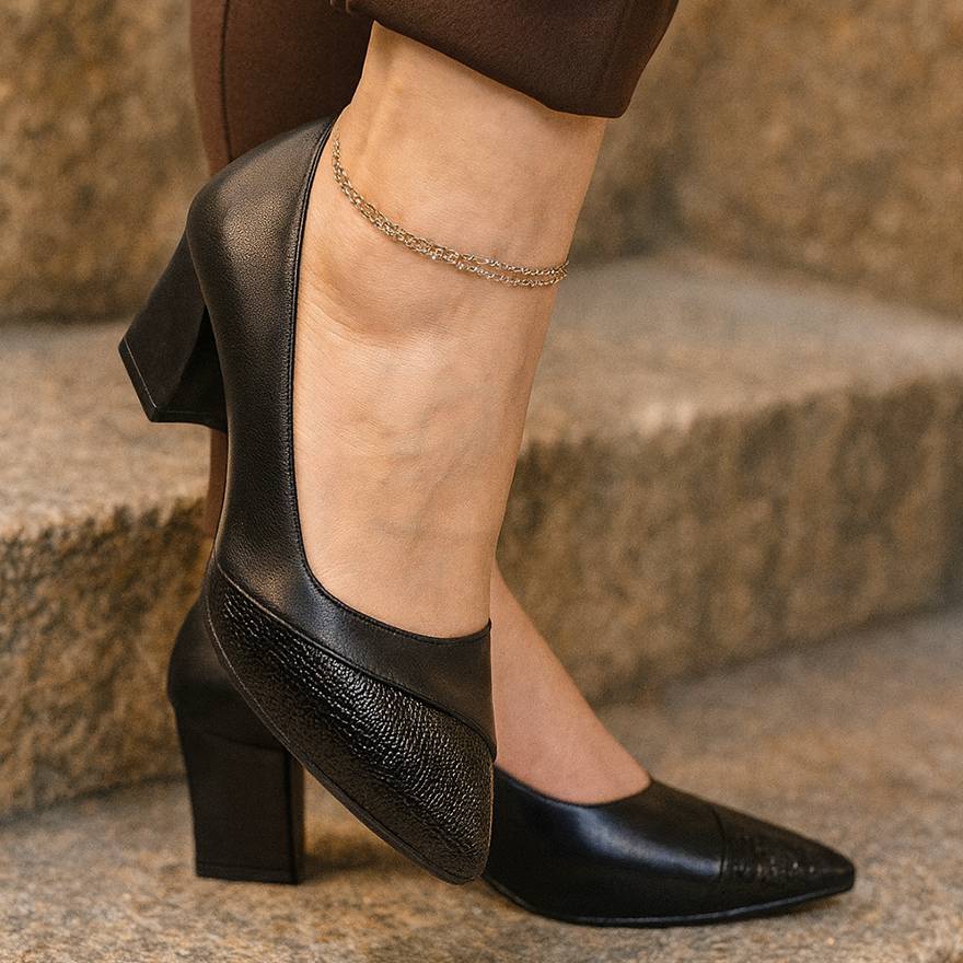 کفش جنس : چرم رنگ : مشکی سایز : 37 / 38 / 39 / 40 پاشنه : 5 سانت