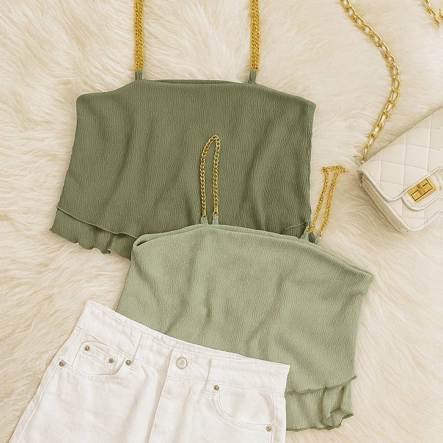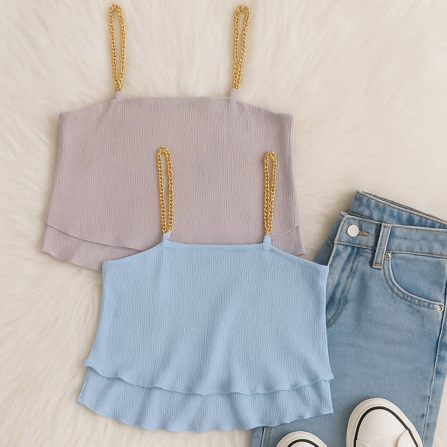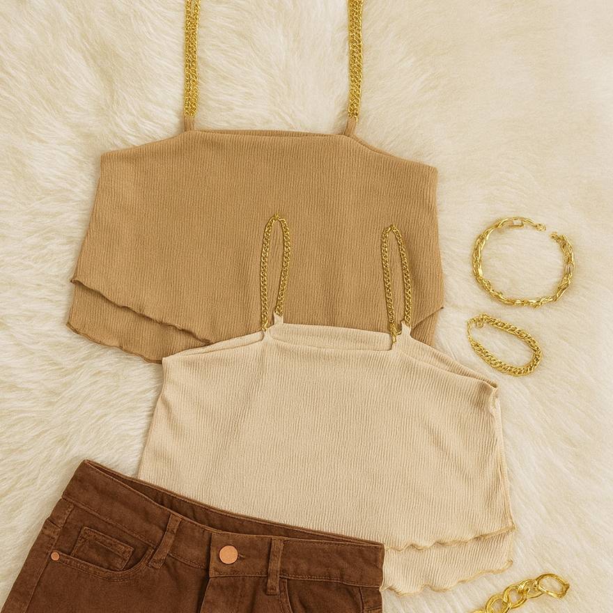 تاپ جنس : کریشه رنگ : در چند رنگ سایز : فری سایز ( 36 تا 44 ) قد : 46 دور سینه : 82