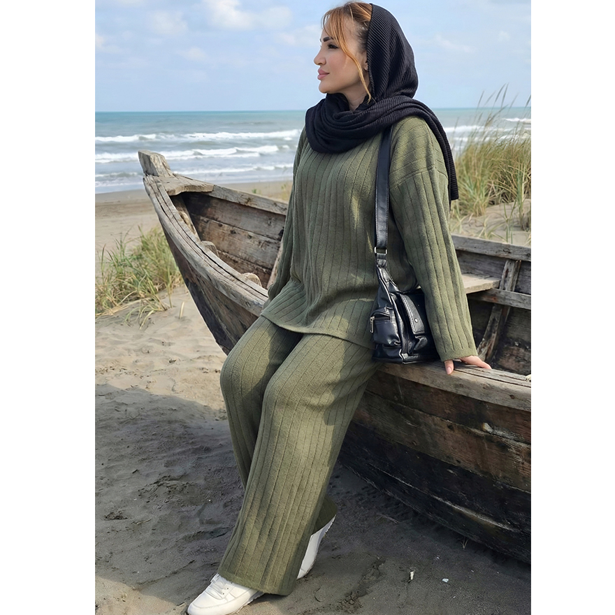 ست جنس : بافت رنگ : در چند رنگ سایز : فری سایز ( 38 تا 48 ) قد : 70 قد آستین : 48 / دور بازو : 48 / مچ : 34 دور سینه : 130 قد شلوار : 107 دور کمر : 50 / در حالت کشیده : 116
