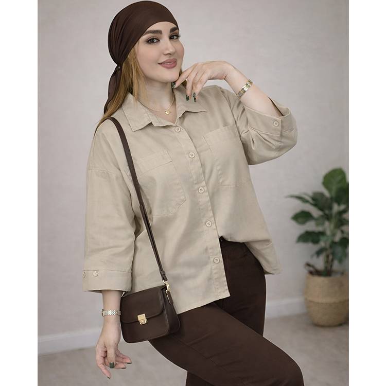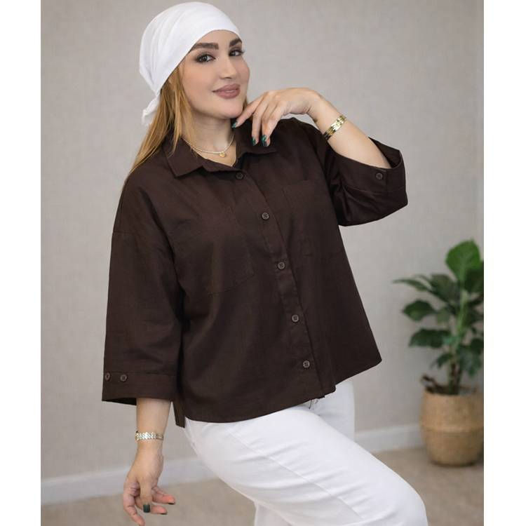 - شومیز لینن دو جیب 38300102