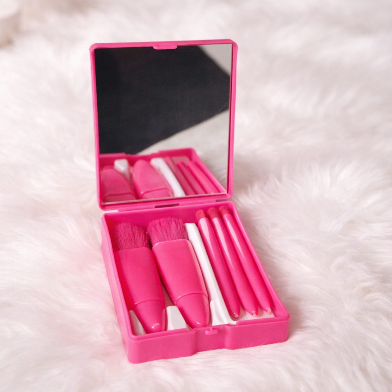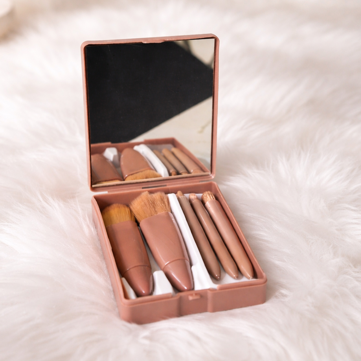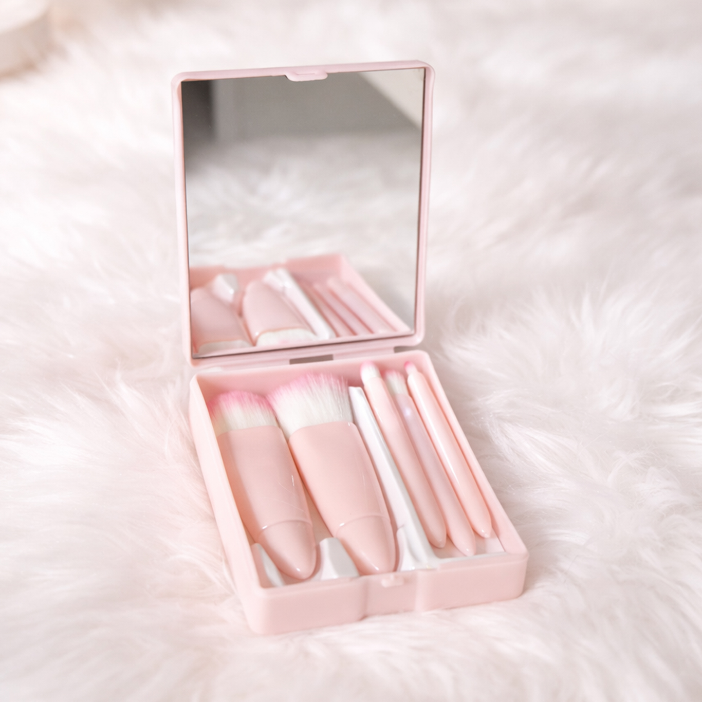 ست براش آینه دار 5 تیکه دارای محفظه براش و آینه وزن سبک و کم جا و کوچک مناسب مسافرت بسیار نرم و لطیف و ابریشمی تراکم بالا و بدون ریزش قابلیت شستشو