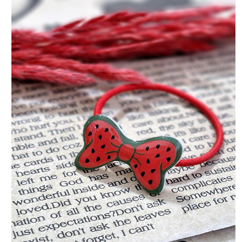 کش مو جفتی طرح: هندوانه پاپیونی رنگ: قرمز عرض پاپیون: 3سانتی متر طول پاپیون: 2سانتی متر