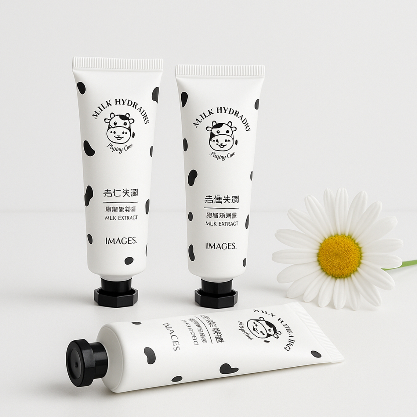 کرم دست غنی شده با شیر گاو مرطوب کننده و آبرسان پوست کنترل کننده چربی پوست ضد حساسیت و ضد جوش مانع در ایجاد چین و چروک پوست تقویت کننده سد دفاعی پوست قابل استفاده برای دست و صورت و بدن